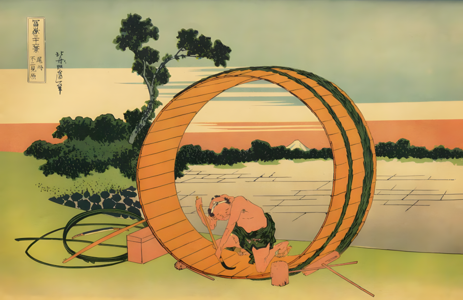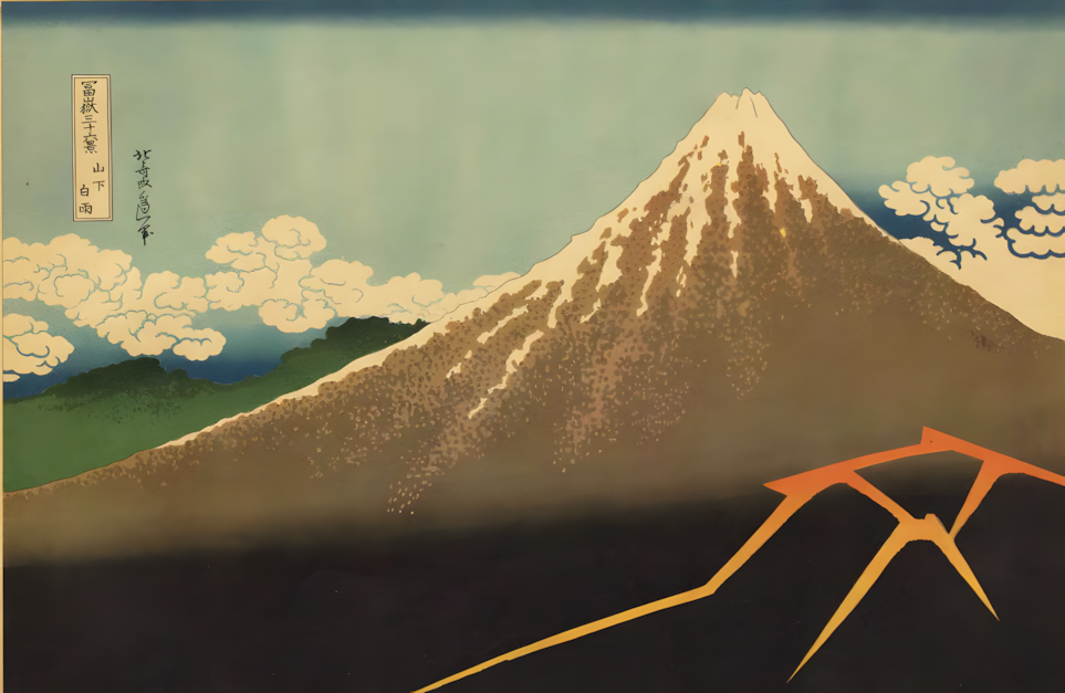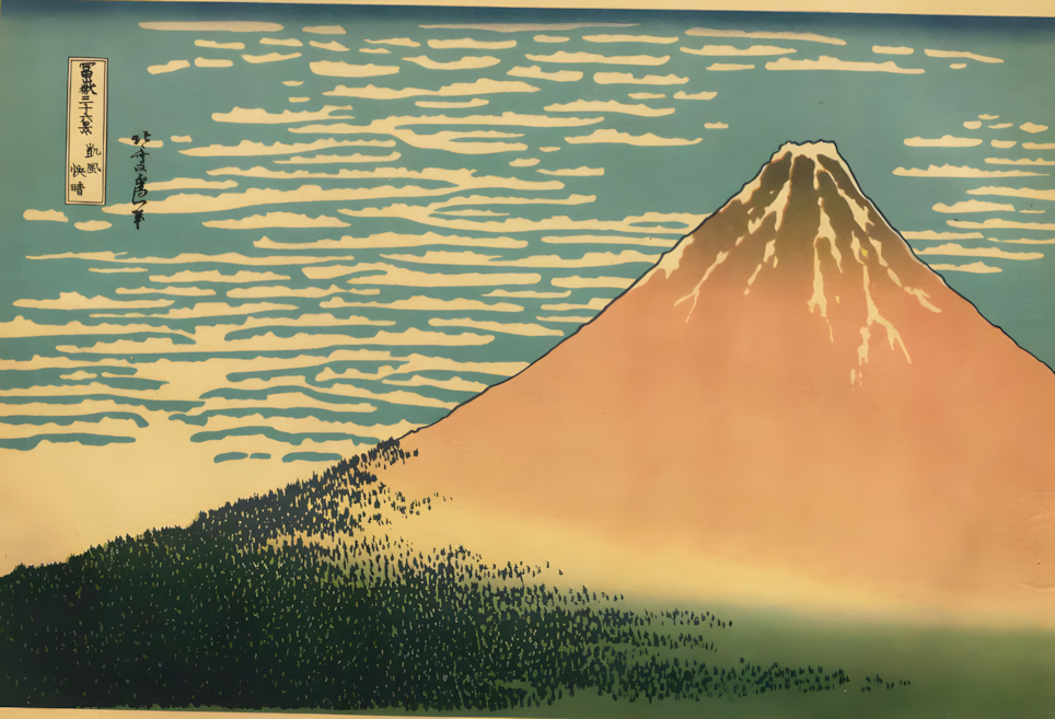 Hokusai's masterpiece "Thirty-six Views of Mt. Fuji", which is particularly famous for its powerful depiction of waves and its strange composition, has influenced art around the world. In particular, the vivid indigo (Pruschamp blue) is said to have shocked European impressionists :contentReference[oaicite:1]{index=1}.