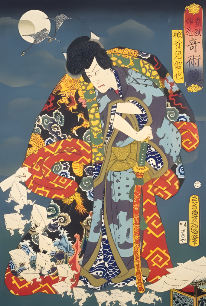 In ukiyo-e and Nishiki-e, "ninjas" that appear in entertainment works such as Jiraiya, Yuri Tanba, and Goemon Ishikawa were vividly depicted. In particular, Nishiki-e is staged for festivals and plays, emphasizing flashy costumes and action: contentReference[oaicite:1]{index=1}.